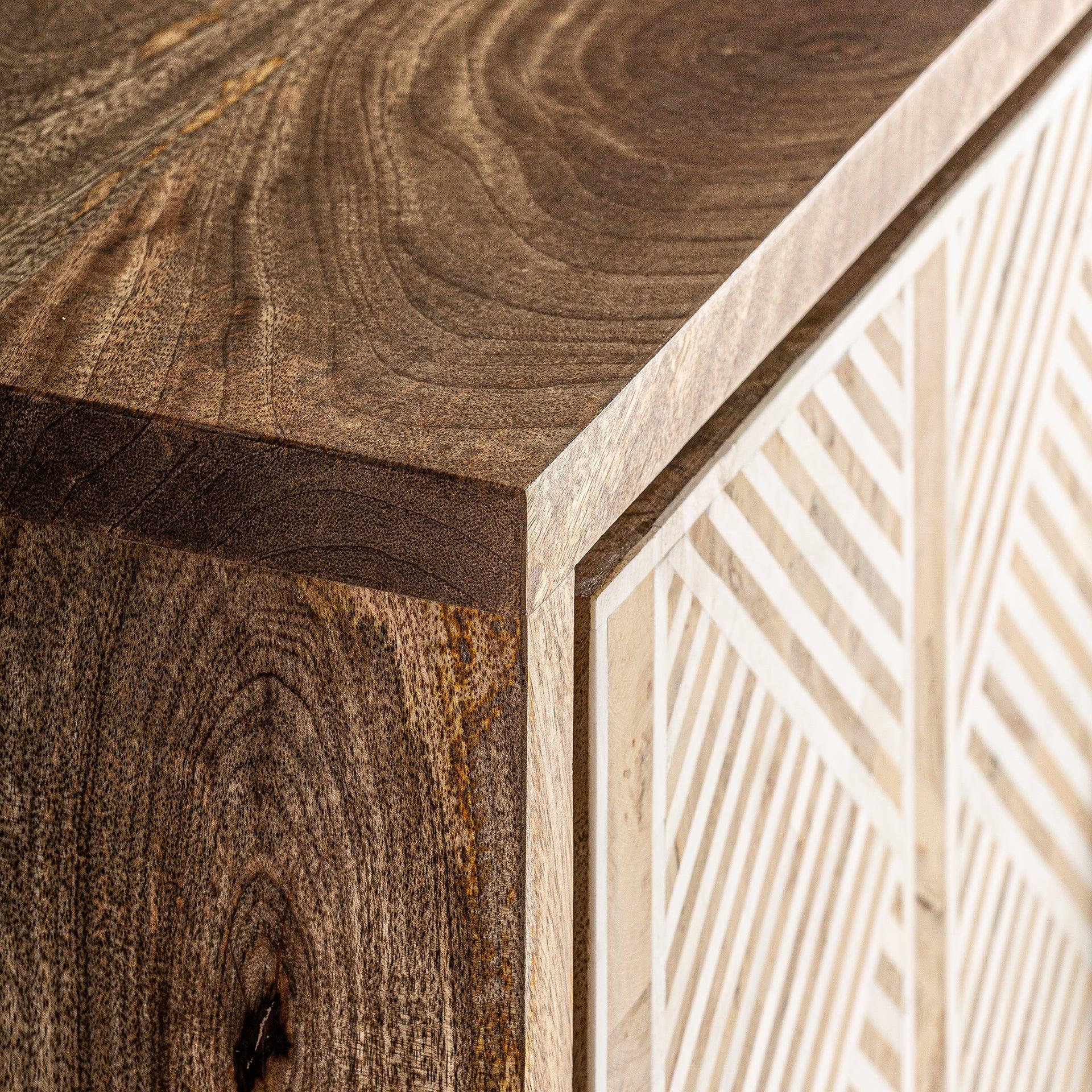 The rich natural finish highlights the organic grain patterns and textures of mango wood, bringing warmth, elegance, and earthy charm to your interior space. -