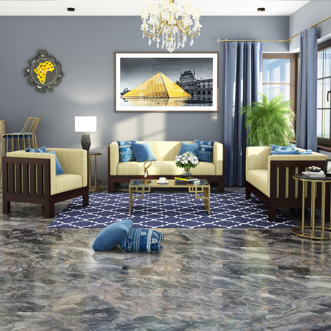 - Depending on your screen settings and resolution on your device there may be a slight variance in fabric colour and wood polish of the image and actual product.